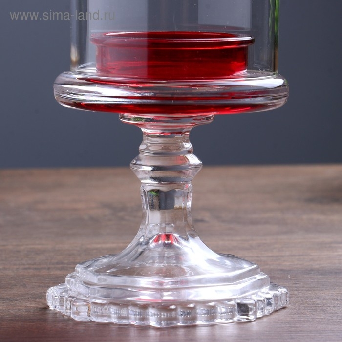 Подсвечник стекло на 1 свечу "Бокал на ножке" красный 18х8,5х5 см