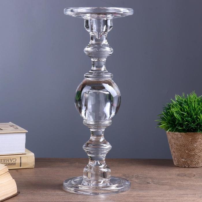Подсвечник стекло на 1 свечу двусторонний "Классический с шаром" прозрачный 30х11,3х11,3 см