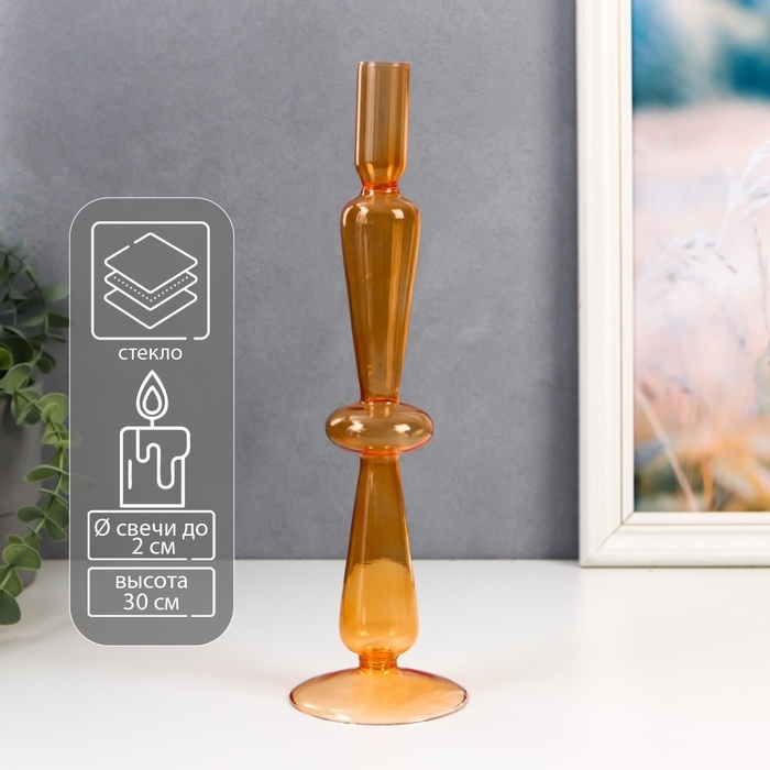 Подсвечник стекло на 1 свечу "Эльзас" прозрачный оранж 30х7,5х7,5 см