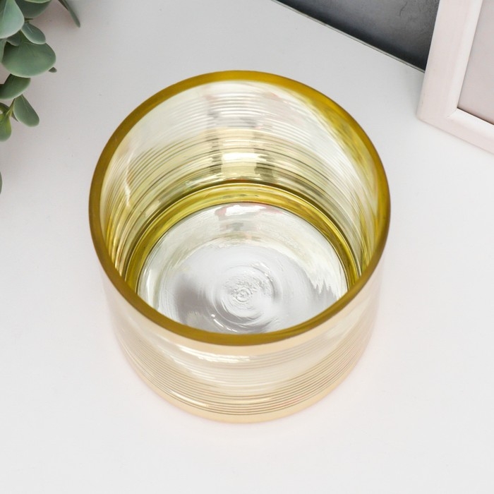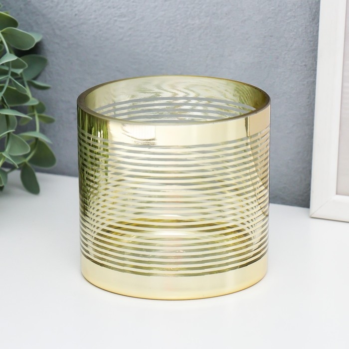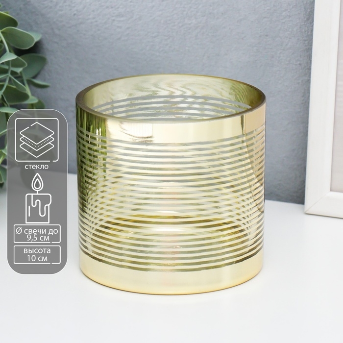 Подсвечник стекло на 1 свечу "Полоски" золото 10х10х10 см