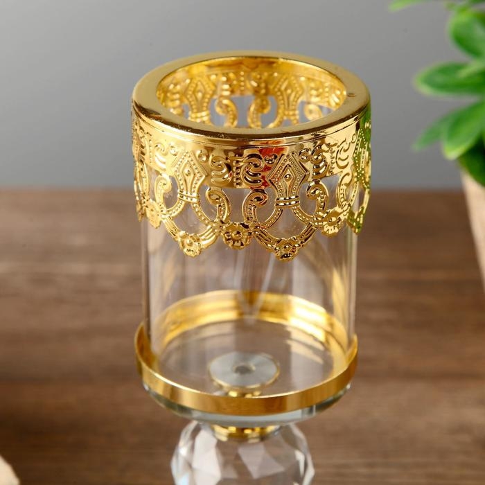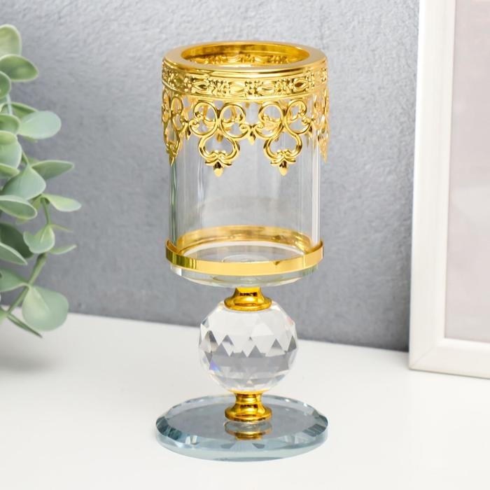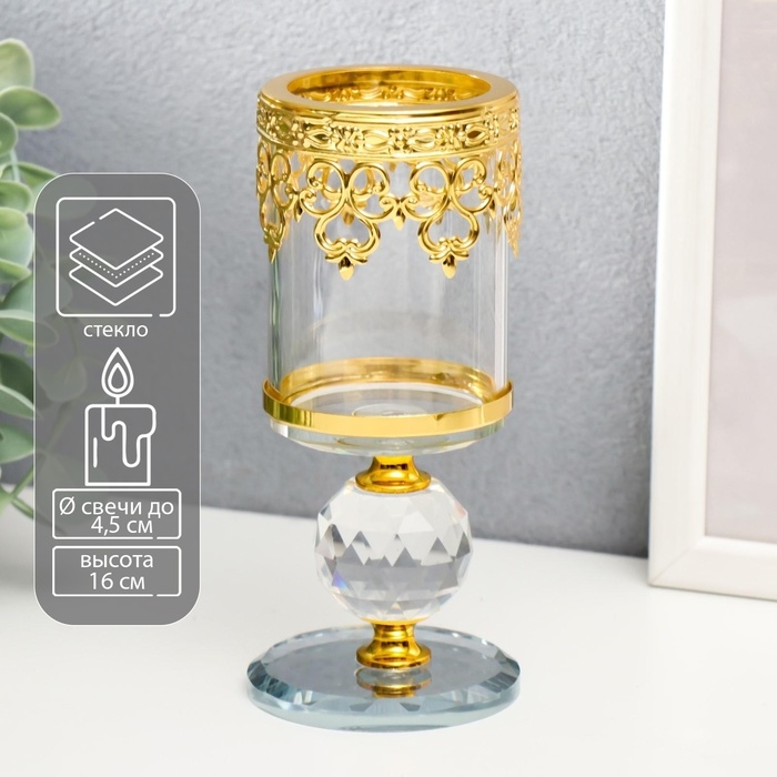 Подсвечник стекло на 1 свечу "Шар кристалл и золотые узоры" 16х6,3х6,3 см
