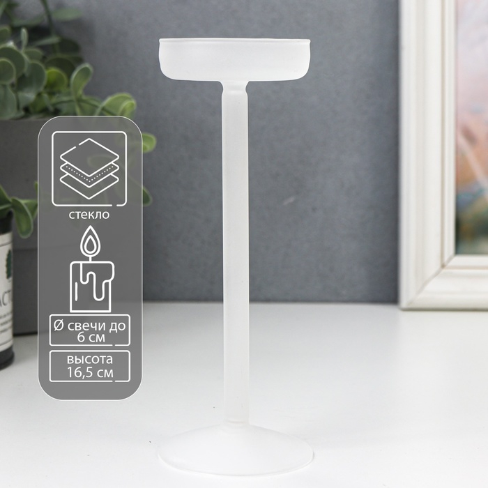 Подсвечник стекло на 1 свечу "Высокая ножка" белый d до 6 см 16,5х6х6 см