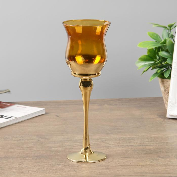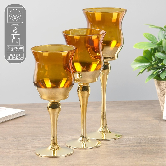 Подсвечник стекло набор 3 шт "Бокалы" высота 18, 20, 22,5 см золото 22,5х7,8х7,8 см