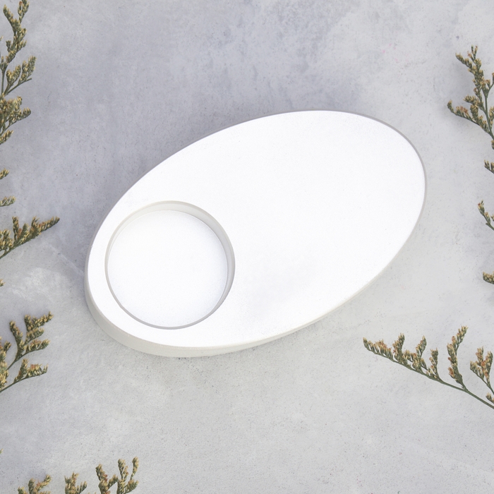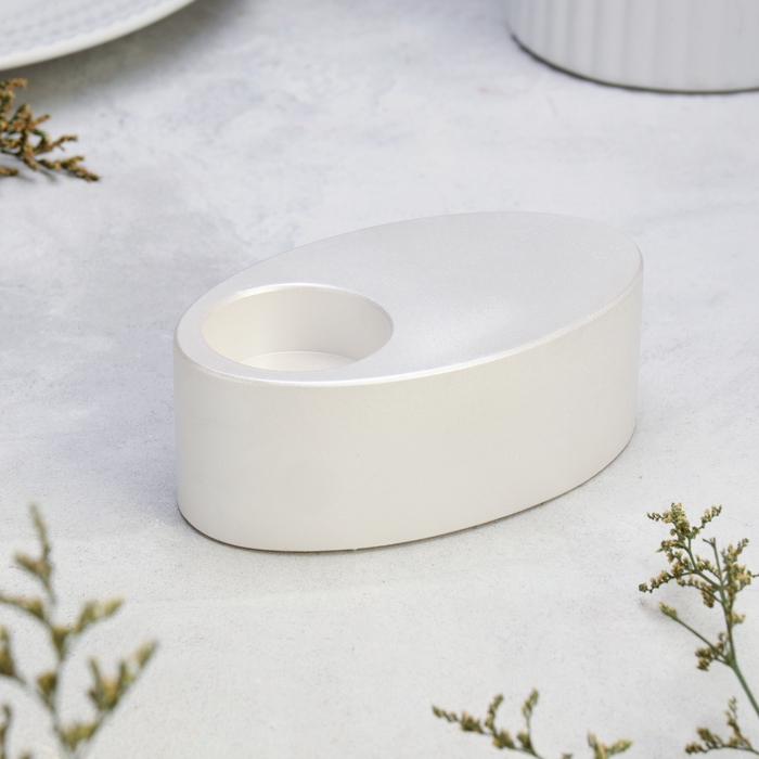 Подсвечник "Узкий овал. Мрамор" из гипса,11,5х7х4см,белый перламутр