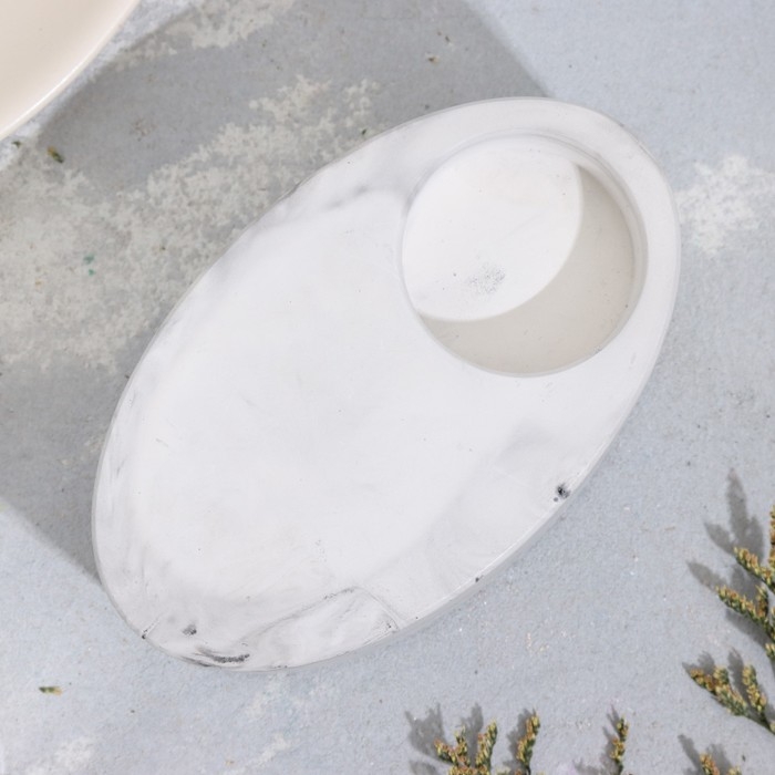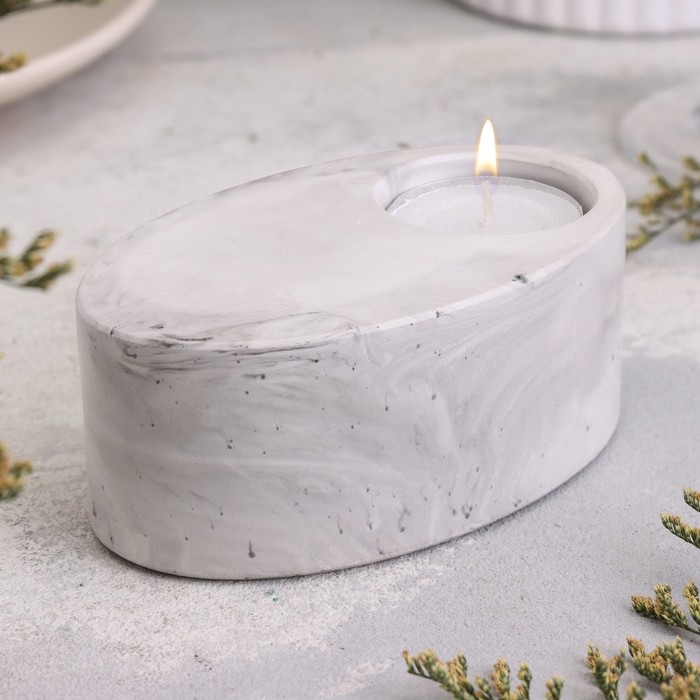 Подсвечник "Узкий овал. Мрамор" из гипса,11,5х7х4см,мрамор с чёрными полосками