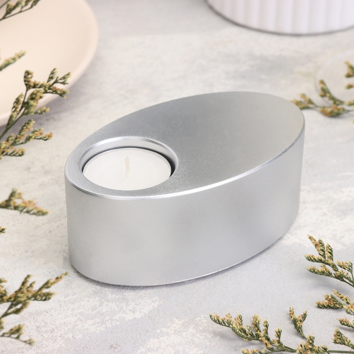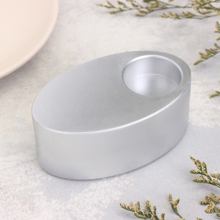 Подсвечник "Узкий овал. Мрамор" из гипса,11,5х7х4см,серебро