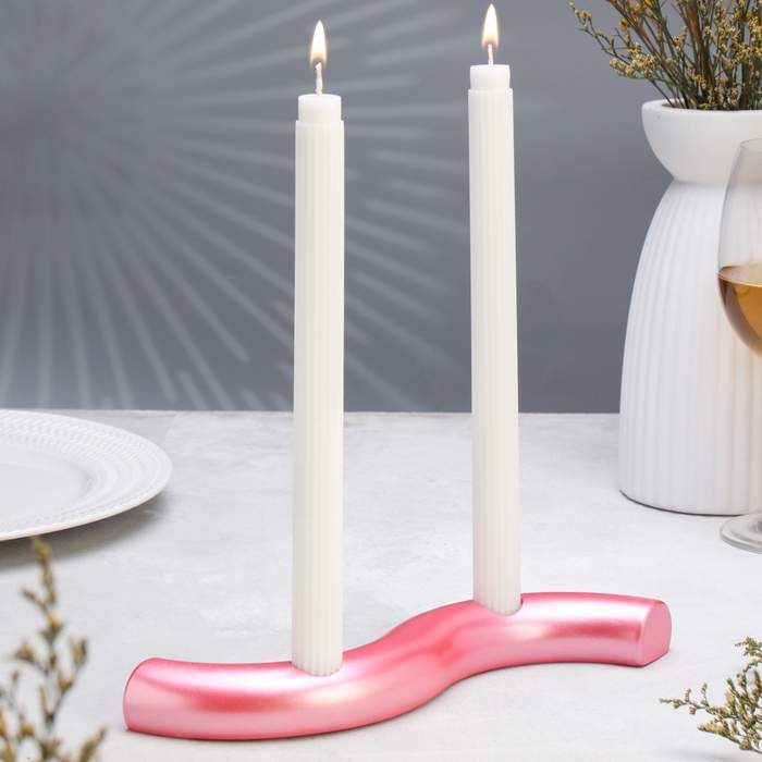 Подсвечник "Волны" для двух свечей из гипса,25х6х3см,розовый