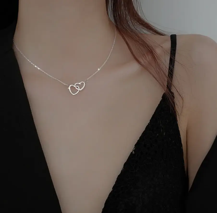 Подвеска двойное Сердце серебристая