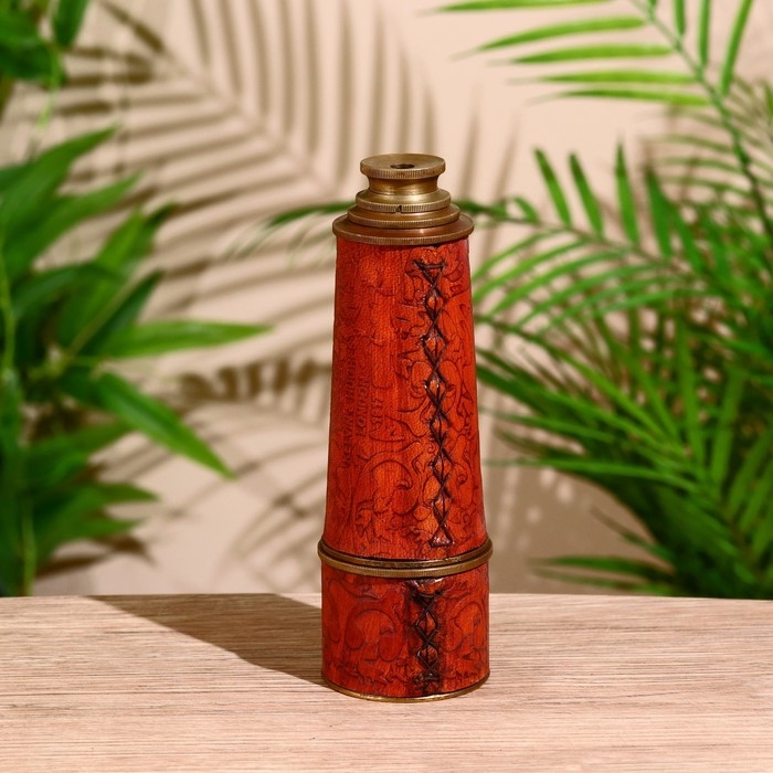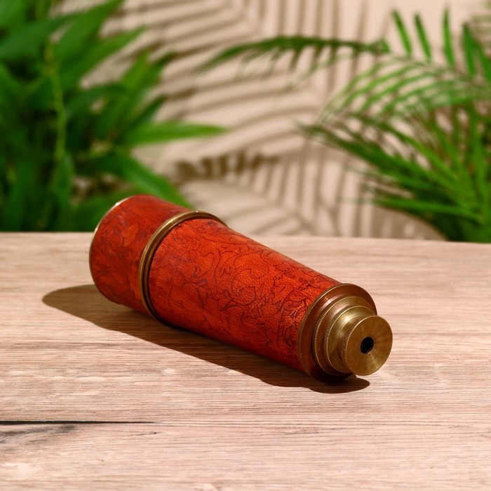 Подзорная труба с гравировкой 43 см, латунь, кожа