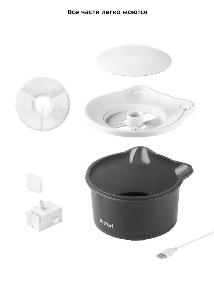 Фонтанчик для животных Kitfort KT-4049 — это устройство, обеспечивающее чистой, не застоявшейся водой ваших питомцев. Водяной насос перекачивает воду из внутреннего резервуара в чашу для питья, откуда вода стекает обратно в резервуар. Когда капли воды выходят из фонтанчика и падают в чашу, происходит обогащение воды кислородом, что предотвращает застаивание воды.