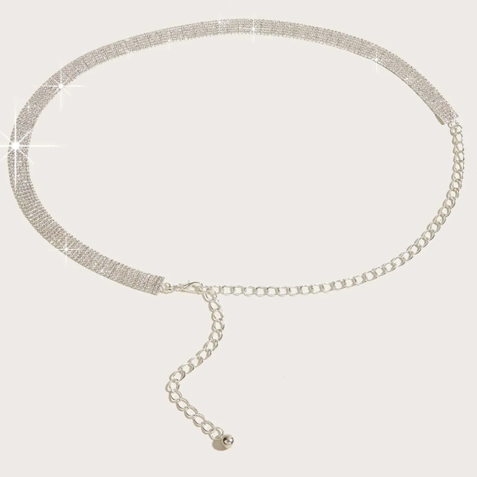 Женский пояс в виде цепочки – это стильный и универсальный аксессуар со стразами, который завершает любой образ. За счет цепочки с замком возможна регулировка длины от 60см до 115см. Благодаря своему элегантному дизайну, эта тонкая поясная цепочка идеально подходит как для повседневной носки, так и для особых случаев, добавляя изюминку в любой ансамбль. При изучении предложений на рынке можно отметить, что наш блестящий длинный аксессуар выделяется своим качеством и долговечностью. В отличие от стандартных моделей, этот ремень имеет уникальную текстуру, которая привлекает внимание и придаёт оригинальность вашему стилю. Декоративная серебристая подвеска с камнями отлично дополняет стильные образы с верхней одеждой или платьями, подчеркивая вашу индивидуальность. Узкий безразмерный бодичейн можно носить с брюками, джинсами, пиджаками или кофтами.