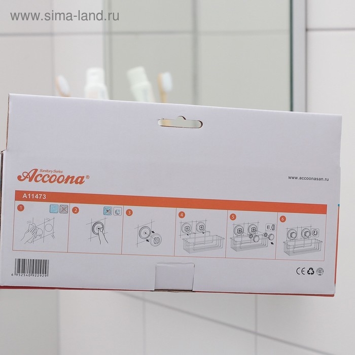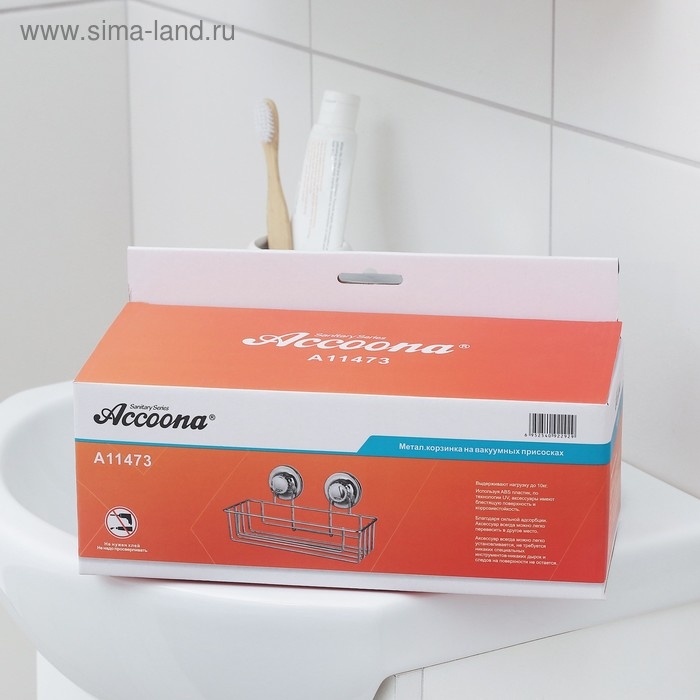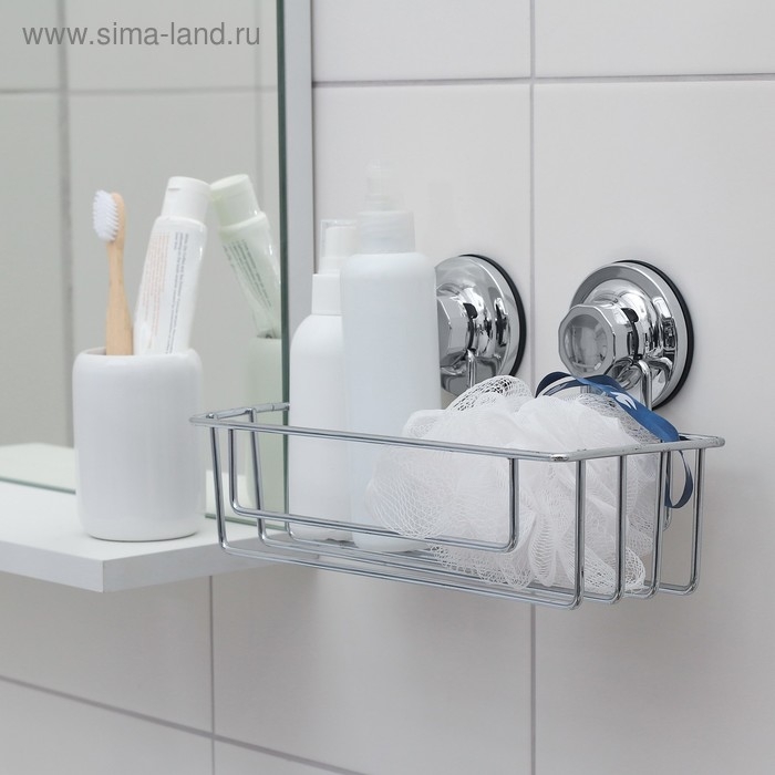 Полка для аксессуаров на вакуумных присосках Accoona, A11473, 25×10×9,5 см, цвет хром