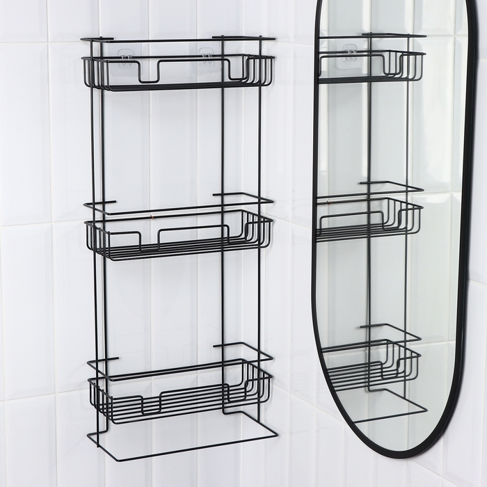 Полка прямоугольная 3-х ярусная, 12,5×66×29,5 см, цвет черный