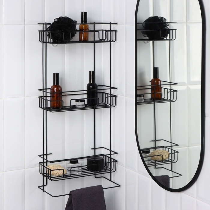 Полка для ванной угловая 3-х ярусная, 20×20×66 см, цвет чёрный
