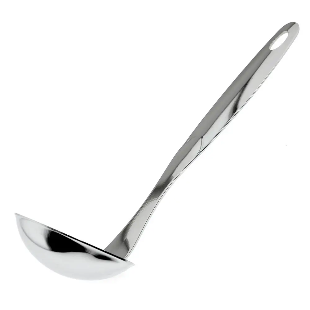 Половник изготовлен из стали с хромированным покрытием, что обеспечивает эстетичный внешний вид. Материал гигиеничен, рассчитан на длительный срок службы. Инструмент может использоваться не только для выпекания блинов, но и для разливания компотов, киселей, морсов. Отверстие на ручке изделия обеспечит удобство хранения – половник можно повесить на крючок. После использования вымыть с жидкими моющими средствами.
