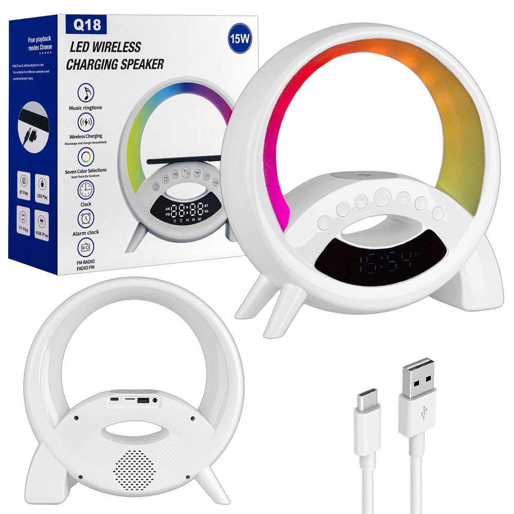 Портативная акустика RGB с беспроводной зарядкой Q18 белый (24шт/кор)