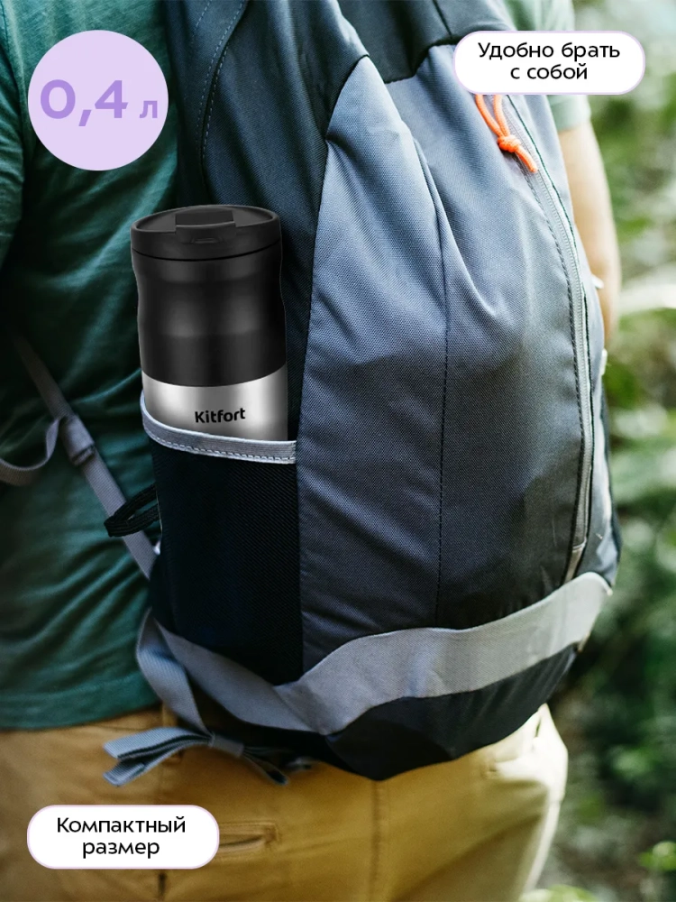 Металлическая термокружка надежнее и прочнее пластиковых термокружек. Двойные стенки термокружки обеспечивают высокую температуру напитка внутри, но комфортную температуру корпуса термокружки снаружи.