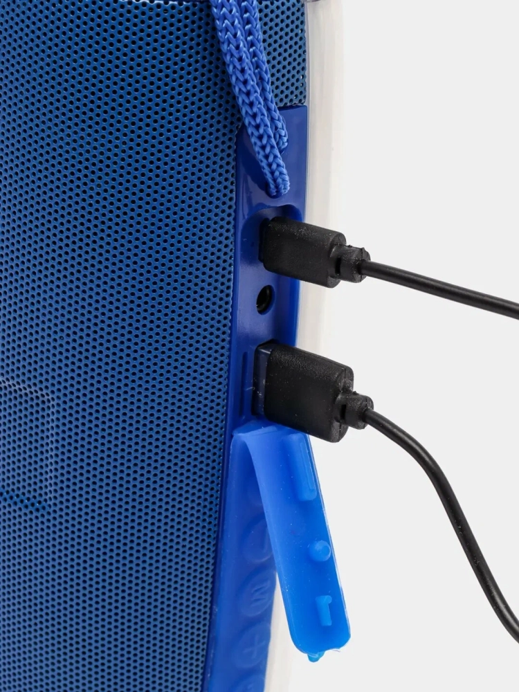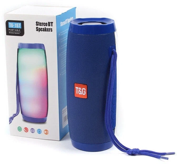 Портативная колонка TG157 с подсветкой предназначена для воспроизведения музыки любого Bluetooth-совместимого устройства на расстоянии до 10 метров, а так же проигрывания файлов MP3 c USB накопителя и SD карт. В колонке установлен линейный аудиовход для подключения мобильного телефона, MP3 плеера или компьютера. А также установлено 5 режимов подсветки. Имеет влагозащитный корпус, под которым располагаются два динамика. Есть функция радио, а также вы сможете зарядить свой смартфон от этой колонки. Количество динамиков: 2 * Емкость аккумулятора, мА/ч: 1200 * Рабочая дистанция: до 10 м * Время работы, в часах: 6 * Версия Bluetooth: 4.2 * Встроенный радиоприемник: да * Дополнительные функции: FM радио, Поддержка MicroSD, Встроенный микрофон, Функция громкой связи (Hands Free) * Защита от пыли и влаги: IPX5 * Разъемы аудио: 3.5 мм * Разъемы съемных носителей: USB, micro USB, micro SD * Питание: от аккумулятора * Материал: пластик; резина; ткань.
