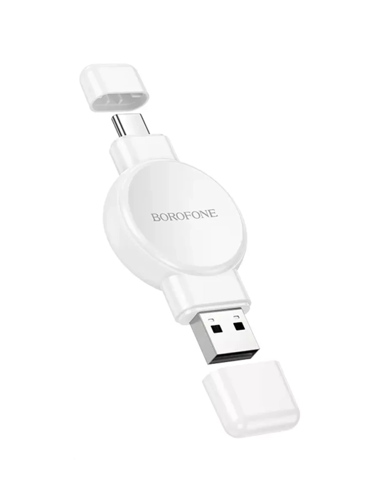 Дополнительно: компактный и удобный в переноске, поставляется с пылезащитным чехлом USB, встроенный входной интерфейс USB-A/USB-C Borofone BQ31 черный и белый: Особенности Качественный материал: AB-пластик обеспечивает надежность и долговечность Широкая совместимость: Поддержка всех популярных моделей Apple Watch и Samsung Galaxy Watch позволяет использовать зарядку без проблем Безопасность: Функции защиты от перегрева и короткого замыкания обеспечивают безопасность использования Удобство использования: Компактный размер и легкий вес делают эту зарядку идеальным спутником в поездках Совместима ли Borofone BQ31 с Apple Watch Series 6? Да, Borofone BQ31 совместима с Apple Watch Series 6. Можно ли использовать зарядку Borofone BQ31 с устройствами других производителей? Нет, Borofone BQ31 совместима исключительно с устройствами Apple Watch и Samsung Galaxy Watch.