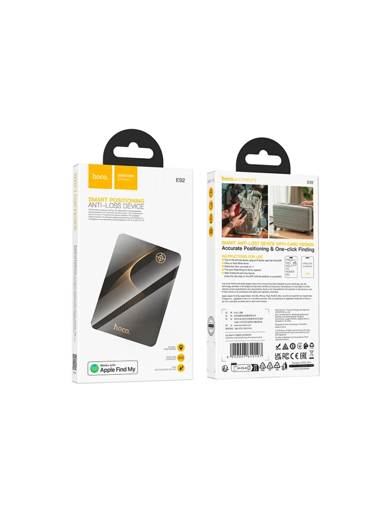 GPS трекер hoco E92 – компактное устройство для отслеживания местоположения авто, вещей и тп. Совместим с iOS 14.5 и более поздних версий, работает с приложением Apple Find My на iPhone.