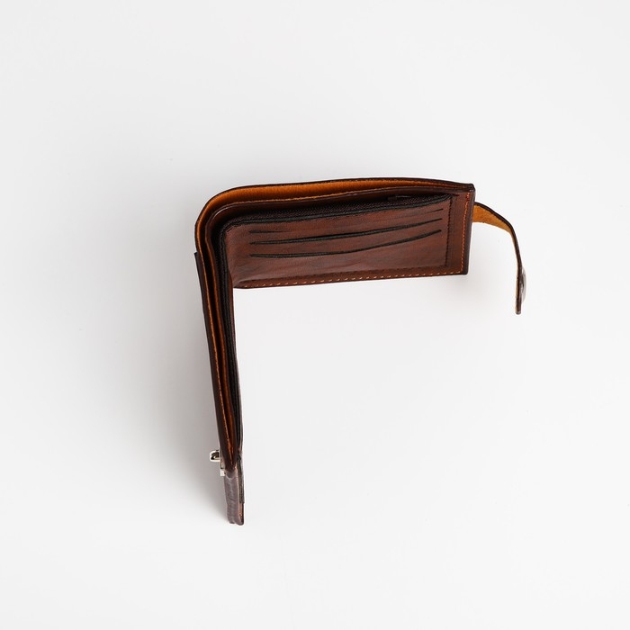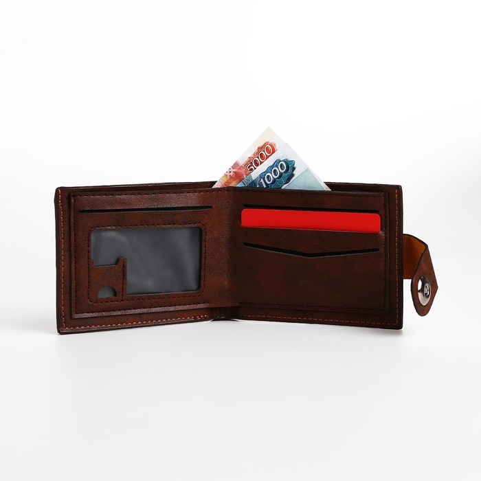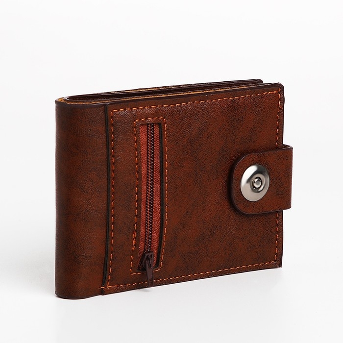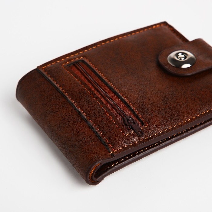 Портмоне мужское на магните, отдел для купюр, для карт, для монет, цвет коричневый