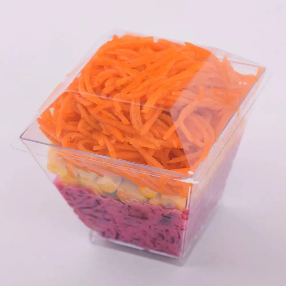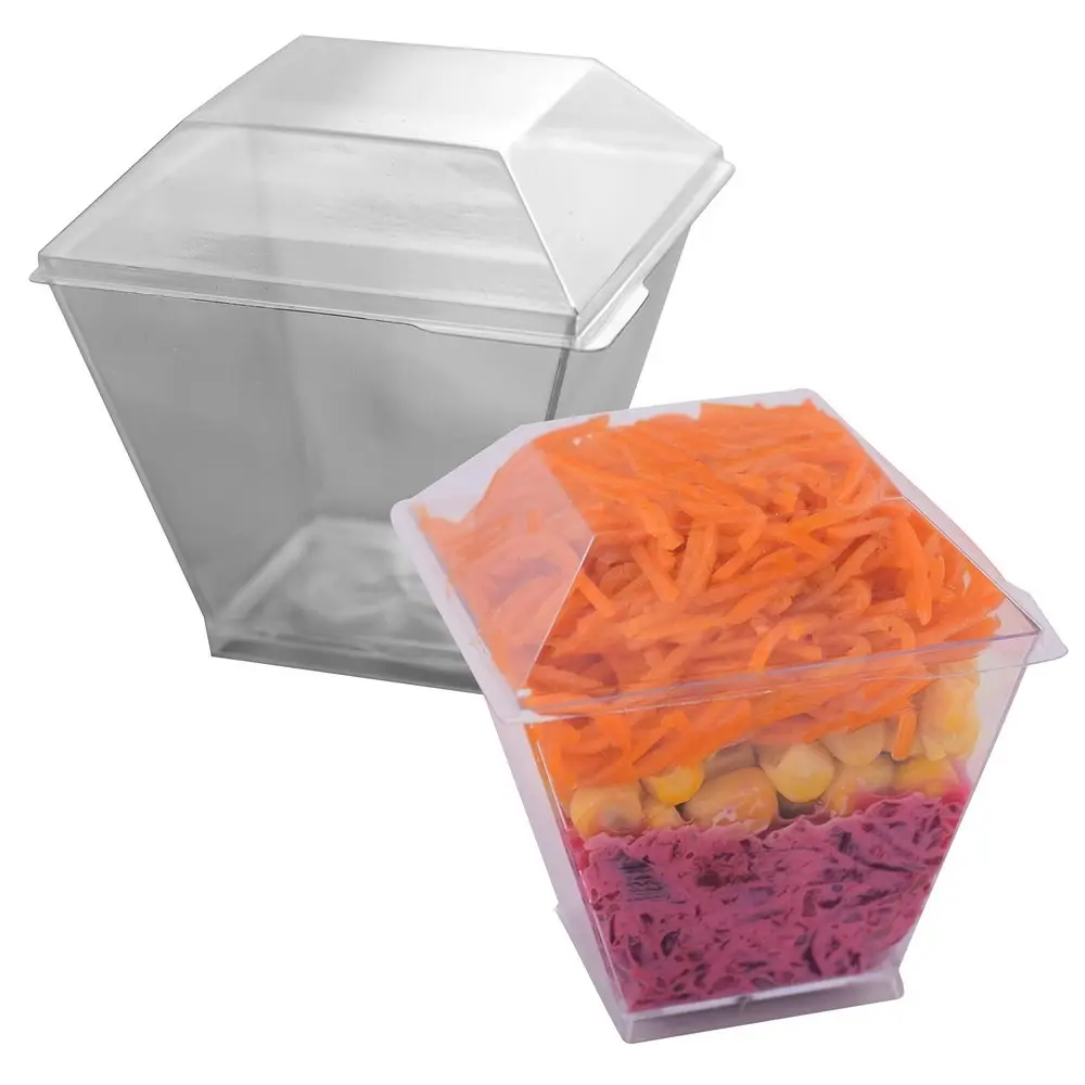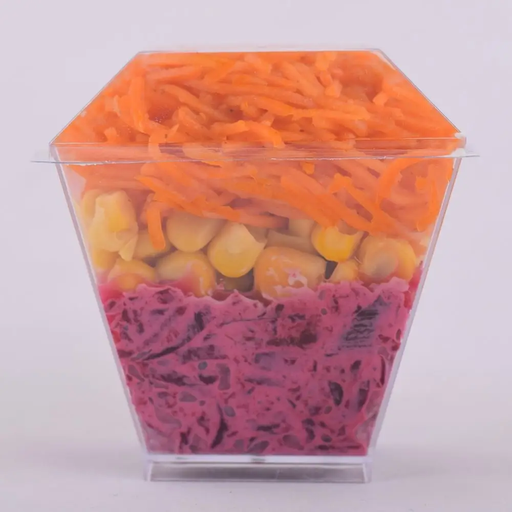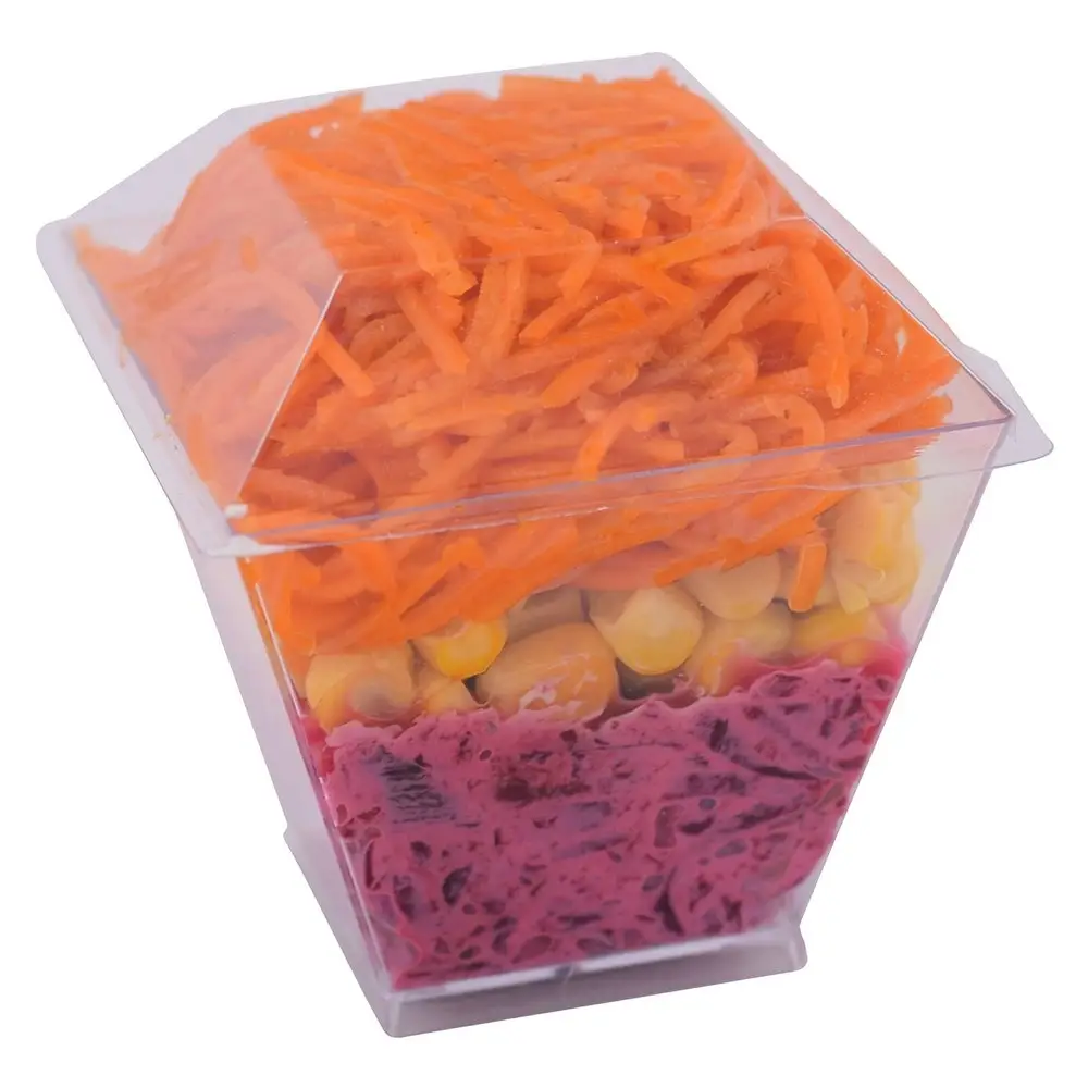 Одноразовые фуршетные формы используются для сервировки стола при организации фуршетов, выездных мероприятий, мастер-классов и т.д. Форма предназначена для мороженого, салатов, закусок, соусов и порционных десертов. Наличие крышки помогает дольше сохранить внешний вид продуктов, избежать заветривания и попадания посторонних предметов. Прозрачные стенки позволят гостям с легкостью догадаться, какая закуска их ожидает на столе. Дизайн изделия гармонично сочетается с любыми предметами сервировки. Формочка станет отличным помощником при проведении семейных праздников и других мероприятий, избавит от необходимости мыть посуду и сэкономит ваше время. Объем 160 мл. Изготовлено: форма из пластмассы (полистирол), крышка из ПЭТ.