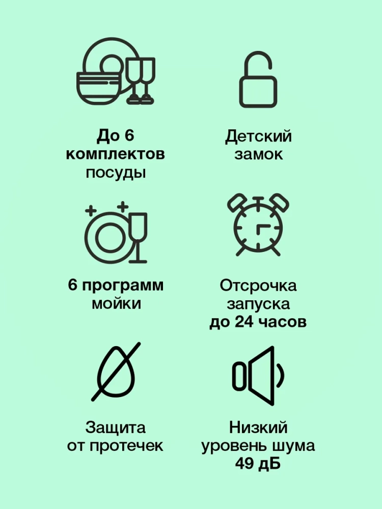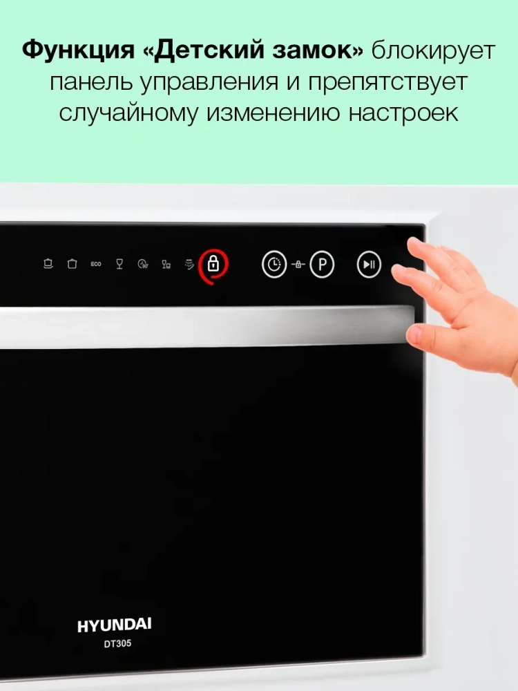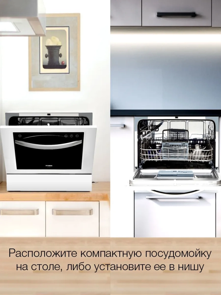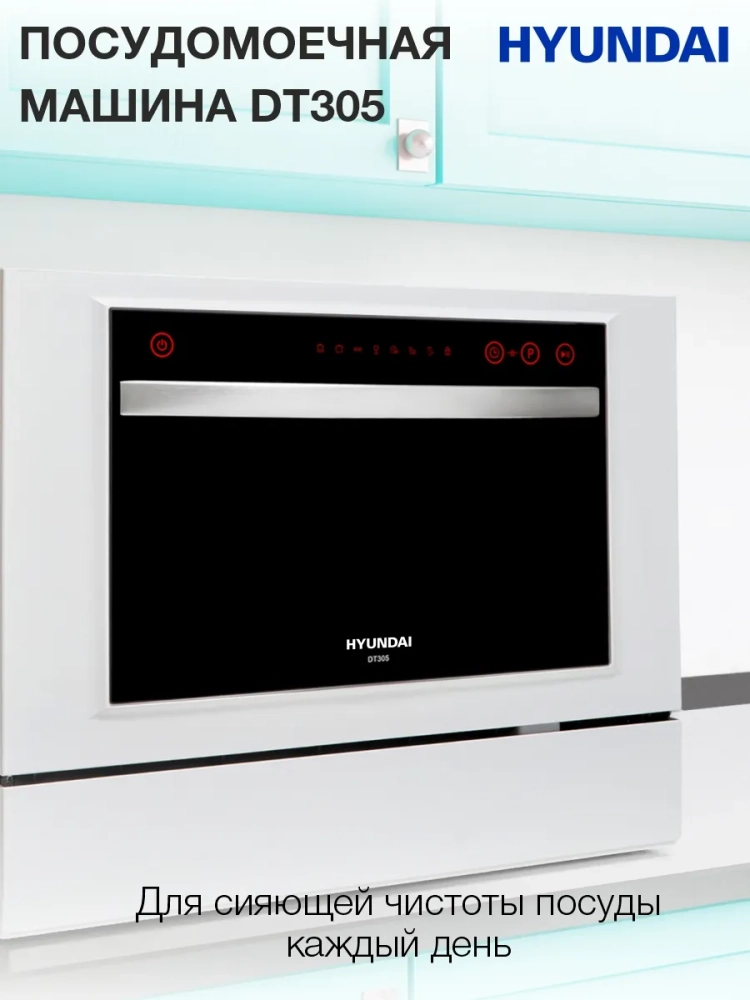 Посудомоечная машина Hyundai DT305 белый, компактная, максимальная загрузка 6 комплектов, защита от протечек AquaStop