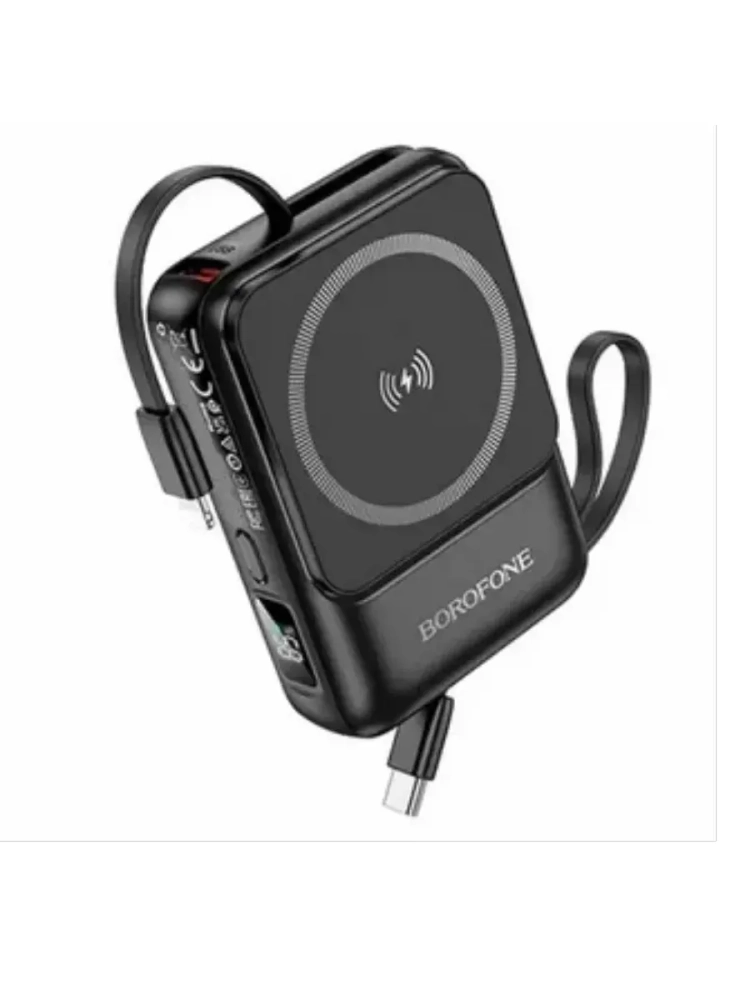 BOROFONE BJ59 - это надежное зарядное устройство для ваших гаджетов, с помощью которого вы сможете обеспечить свое устройство дополнительной ёмкостью аккумулятора. Повербанк имеет ёмкость 10000 mAh (номинальная 5400 mAh) и встроенные кабели которые позволяют заряжать как устройства Lightning, так и устройства Type-C, а также он оснащен беспроводной зарядкой MagSafe, которая позволяет заряжать не только смартфоны но и наушники (стандарт беспроводной зарядки - Qi).