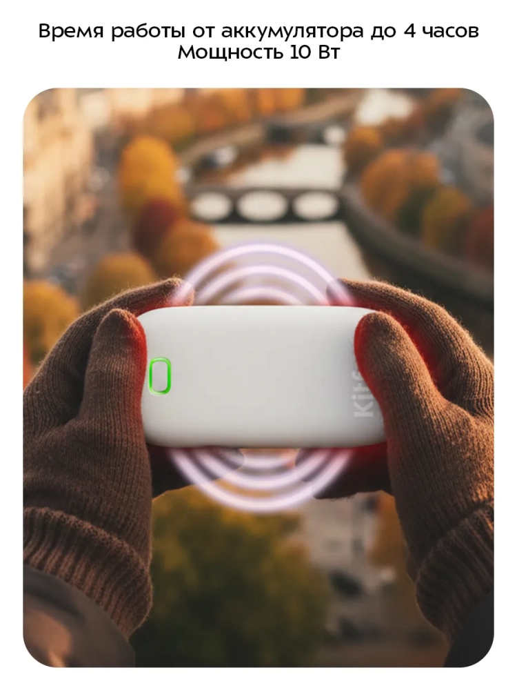Повербанк-грелка KT-2721 работает от аккумулятора, так что вы сможете брать ее с собой в поездки, командировки, на дачу или на природу.