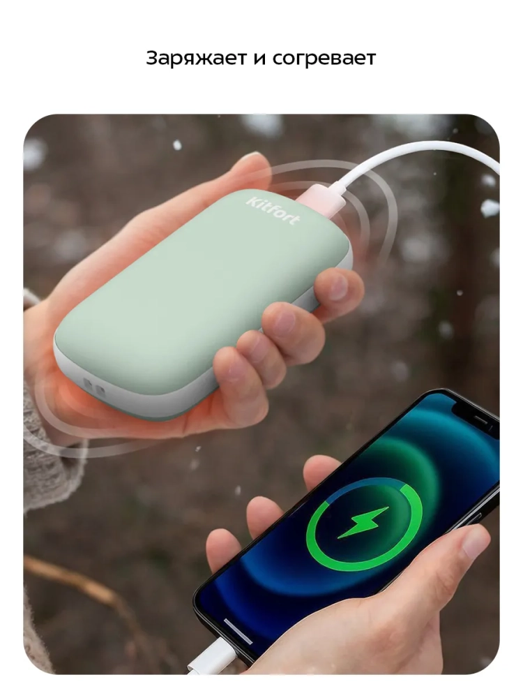 Повербанк-грелка Kitfort KT-2723 поможет согреть руки, ноги, прогреть обувь или одежду в холодное время года. Кроме того, устройство может работать как внешний аккумулятор (повербанк) для зарядки сторонних устройств. Прибор работает или как грелка, или как повербанк. Компактный размер прибора позволяет брать его с собой и использовать в любом удобном месте.