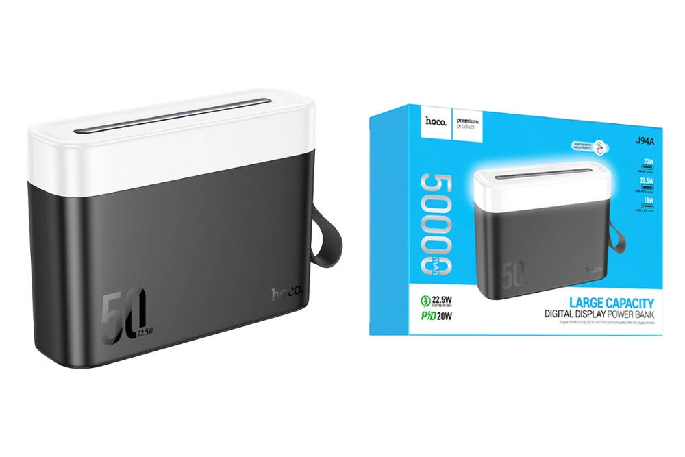 Надежность и функциональностьПортативный power bank Powerbank Hoco J94A с емкостью 50000 мАч — это идеальное решение для тех, кто ценит надежность и функциональность.