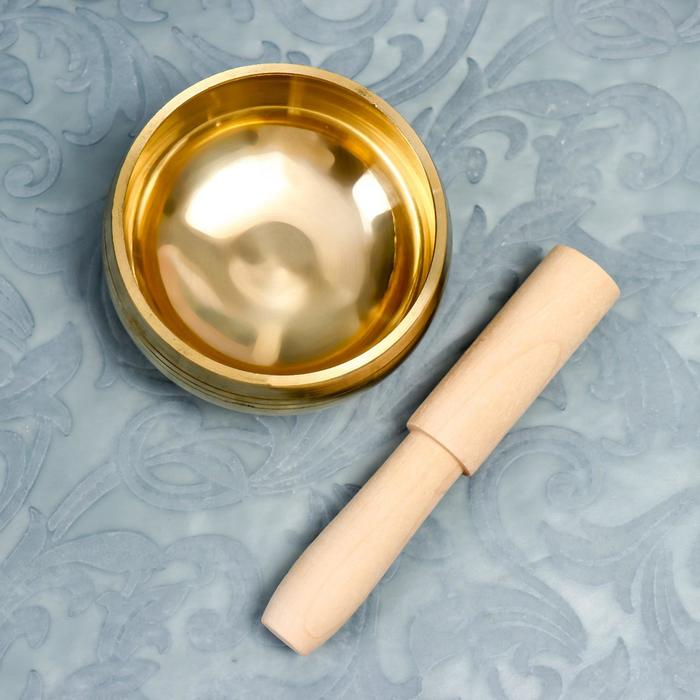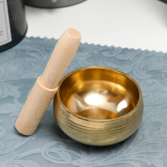 Поющая чаша металл золотая глянец с резонатором вн.диаметр чаши - 8,8 см 5,5х10х10 см