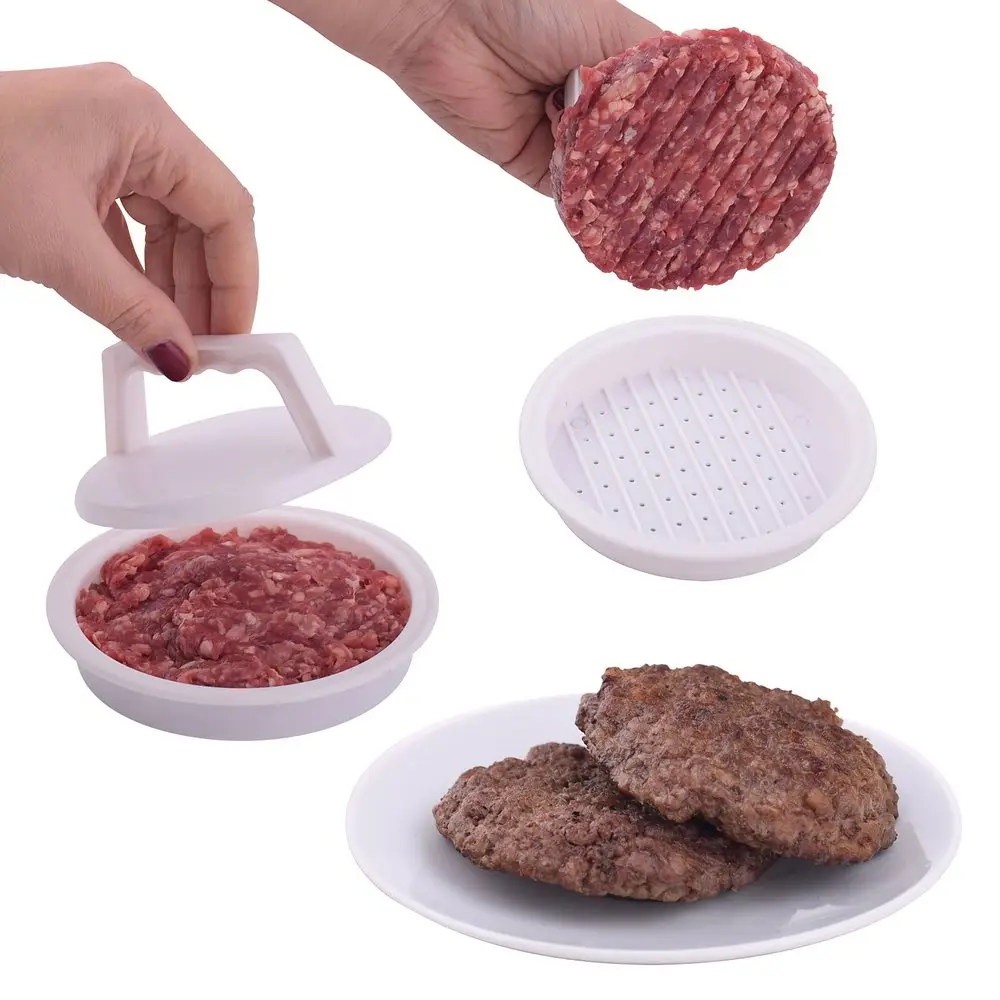 С помощью пресса вы сможете сделать котлеты из любого фарша: говядина, рыба, курица. Небольшое количество фарша поместите в нижнюю часть пресса, равномерно распределите и плотно придавите крышкой. Уберите крышку и переложите полученную котлету на раскаленную сковороду или прокладывайте получаемые котлеты бумагой для выпекания, если хотите приготовить их позже. После использования промойте пресс под проточной водой, можно с использованием жидких моющих средств. Изготовлено из пластмассы (полипропилен).
