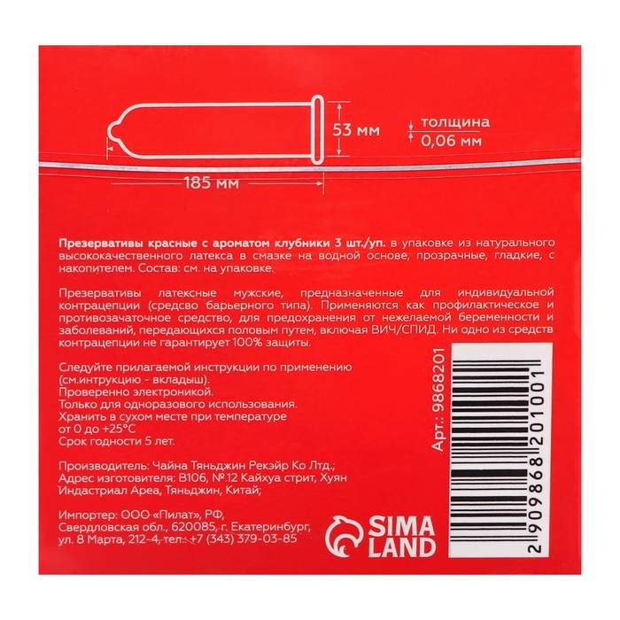 Ароматизированные презервативы – это еще один плюс нашего товара. Они имеют нежный и приятный запах клубники, которые добавят новые ощущения в вашу интимную жизнь. Ароматизированные презервативы создадут особую романтическую атмосферу и помогут вам насладиться каждым моментом.