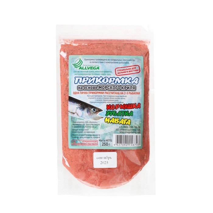 Прикормка ALLVEGA на основе морского криля, корюшка-зубатка-навага, 250 г