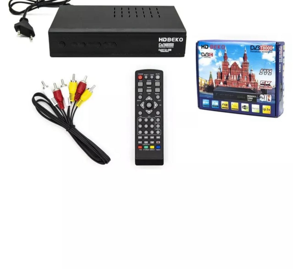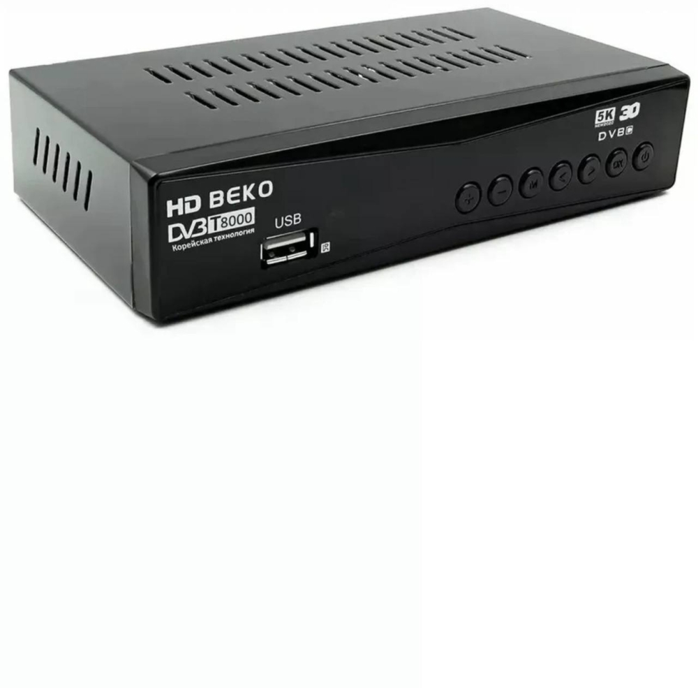 Цифровой телевизионный приемник, ресивер DVB-T2 HD BEKO T8000 Новинка 2023 г. телевизионная приставка HD BEKO, металлический корпус, кнопки на передней панели. Приставка стандарта DVB-T, DVB-T2, DVB-C для просмотра эфирного цифрового и кабельного телевидения. Интерфейс подключения USB, 3RCA, Coaxial, Component, HDMI, Ant In, Ant Out. Для приема эфирных цифровых каналов необходима внешняя комнатная или уличная антенна дециметрового диапазона. Встроенное ПО предоставляет возможность просмотра IPTV, YouTube и MEGOGO через Wi-Fi адаптер (адаптер в комплект не входит). Приставка поддерживает многоканальный звук формата AC3 Dolby Digital, что позволяет воспроизводить современные форматы файлов с мощным многоканальным звуком.