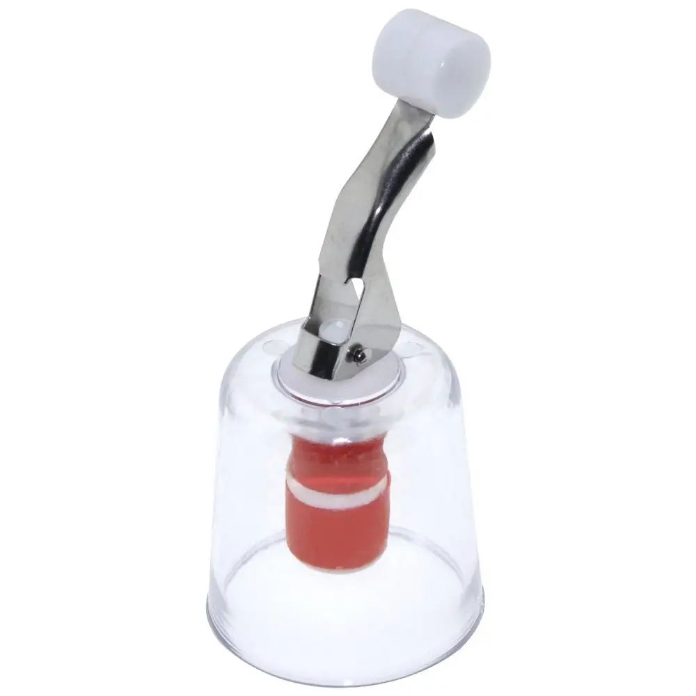 Пробка с зажимом позволяет плотно закрывать бутылки с жидкостями. Изделие подойдет для горлышек стандартного размера, с его помощью можно хранить вино, масло, уксус и другие жидкости в бутылках. Приспособление оснащено колпачком-стаканчиком, создающим дополнительную защиту от пыли. Пробка надежно защитит содержимое от выветривания, попадания пыли и посторонних запахов. Изготовлена из пластмассы (АБС, ТПР), зажим из нержавеющей стали.