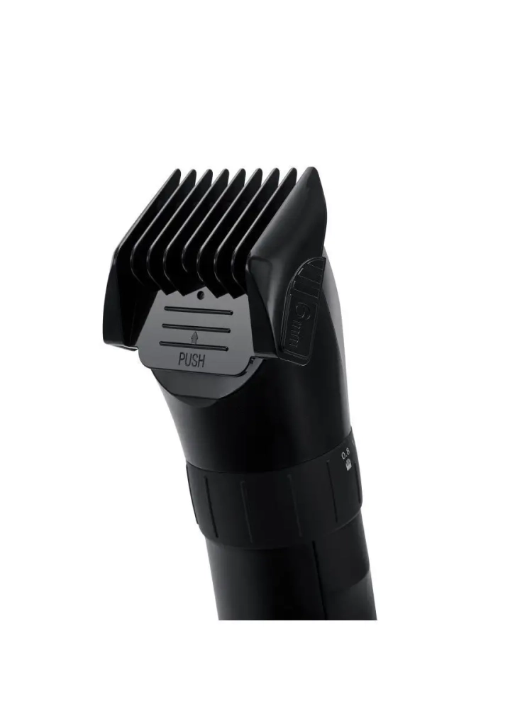 Широкий режущий блок 45 мм оснащен лезвием из нержавеющей стали с титановым покрытием и керамическим режущим блоком, что гарантирует гладкий срез без раздражений. Титановое покрытие нижнего лезвия позволяет долго сохранять остроту лезвия, а также обладает антибактериальными свойствами. Керамическое режущее лезвие долго сохраняет остроту среза. Электрическая машинка обеспечивает дополнительную регулировку длины среза 0,8–2 мм благодаря подвижному ролику с шагом 0,3 мм, что идеально подходит для филировки и контуров висков на лице. 5 сменных насадок и дополнительная регулировка длины среза дают 30 установок длины 0,8 – 16 мм и позволяют точно регулировать длину стрижки волос. Лезвия можно промывать под водой.