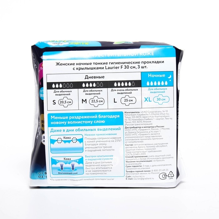 Тонкие гигиенические прокладки с крылышками Laurier F предназначены для использования в ночное время суток. Особый волнистый слой обеспечивает безупречный комфорт даже для тех, у кого чрезвычайно чувствительная кожа. Подкладки хорошо впитывают влагу, не липнут к коже и не натирают ее, обладают высокой воздухопроницаемостью. Ими просто и удобно пользоваться во время критических дней.