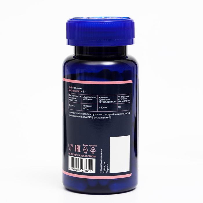 Пролин 1000, L-Proline, для эластичной кожи и предотвращения старения, 90 капсул по 400 мг