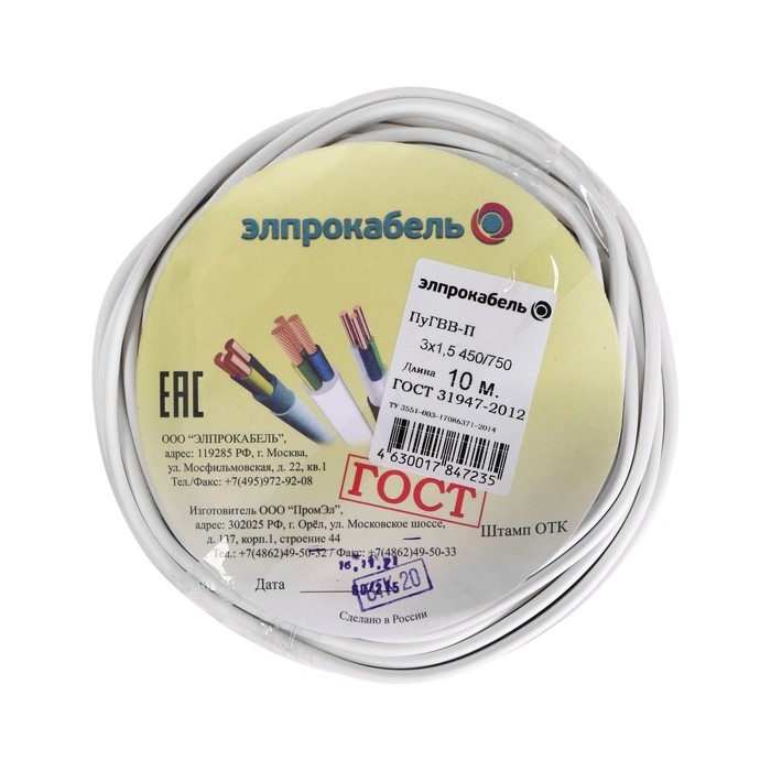 Провод гибкий плоский установочный ПромЭл ПуГВВ, 3х1.5, 10 м, ГОСТ
