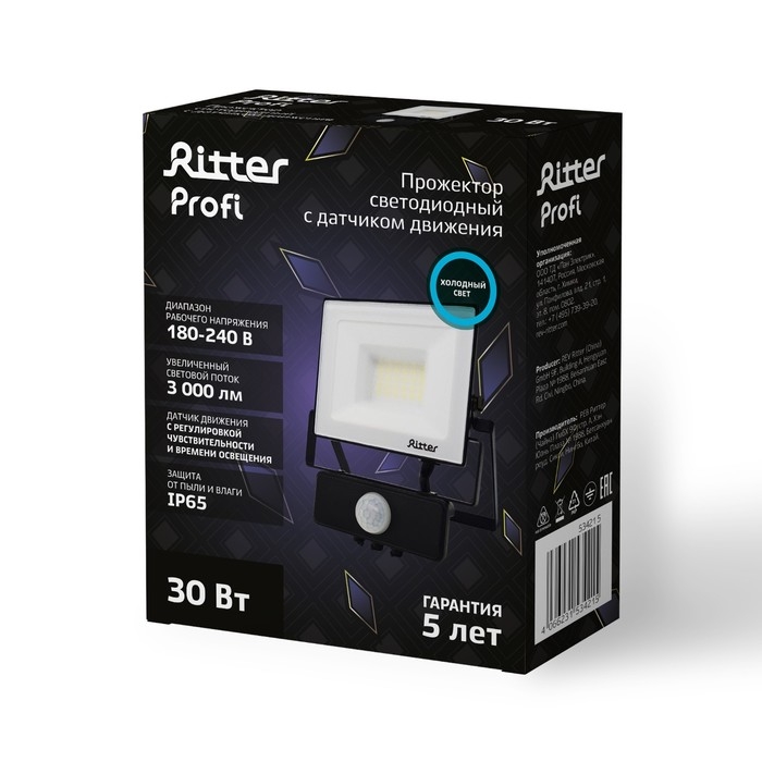 Прожектор светод, PROFI 230В 30Вт 6500К 3000Лм IP65 с датч движ черн, гарантия 5 лет 53421 5
