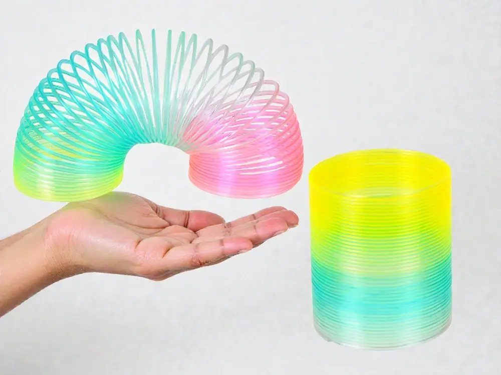 Знаменитая радужная спираль, известная как Слинки, десятилетиями используется как успокаивающий антистресс для взрослых и весёлый тренажёр для детских рук. Она создает гипнотические «шаги» и волны, снимая напряжение и улучшая настроение.