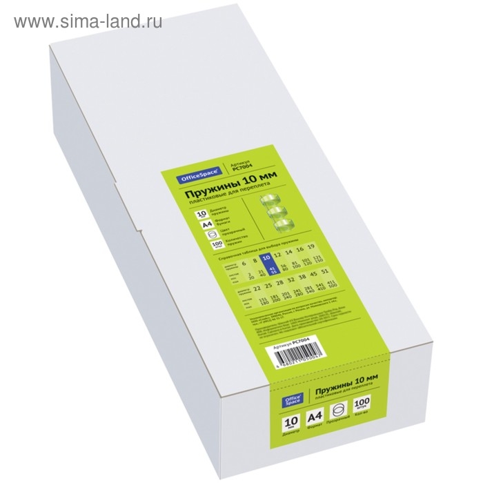 Пружины для переплета пластиковые, d=10мм, 100 штук, сшивают 41-55 листов, прозрачные бесцветные, OfficeSpace