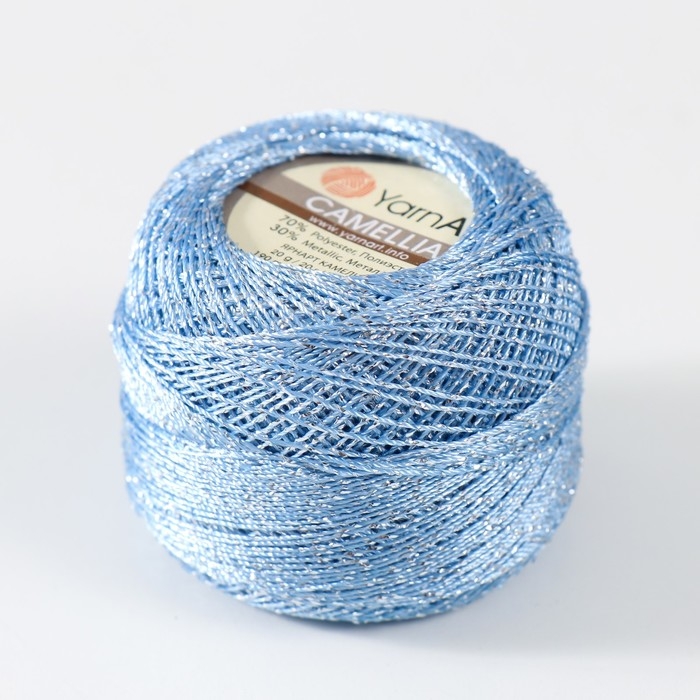 Пряжа "Camelia" 70% полиэстер, 30% люрекс 190м/25±5гр (417 голубой)