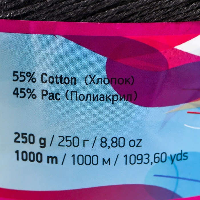 Пряжа "Flowers" 55% хлопок, 45% полиакрил 1000м/250гр (251 разноцветный)