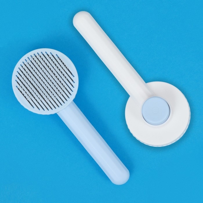 Пуходёрка пластиковая с функцией самоочистки, 7,7 х 19,1 см, голубая