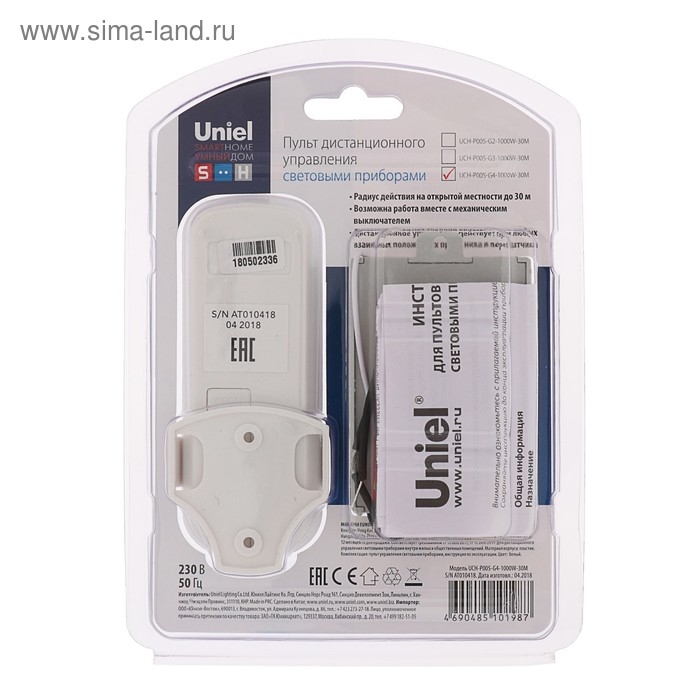 Пульт дистанционного управления светом Uniel совместим со всеми бытовыми системами освещения, выполненными на базе любых ламп. В комплект входит контроллер-приемник радиосигналов, непосредственно пульт дистанционного управления, удобный держатель ПДУ и инструкция. Питание пульта осуществляется от батарейки А23 12V.