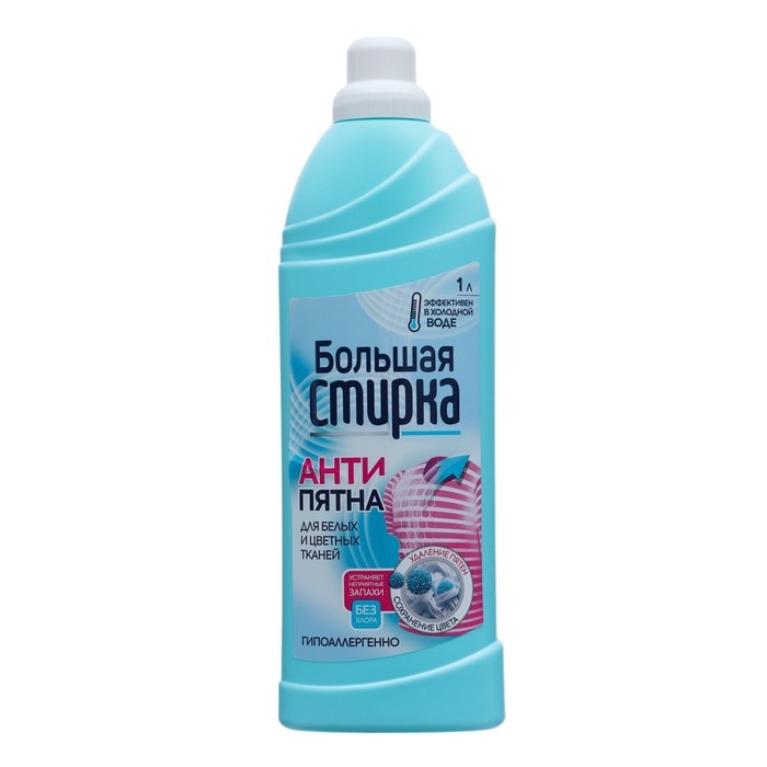 Пятновыводитель БОЛЬШАЯ СТИРКА на основе активного кислорода, 1 л