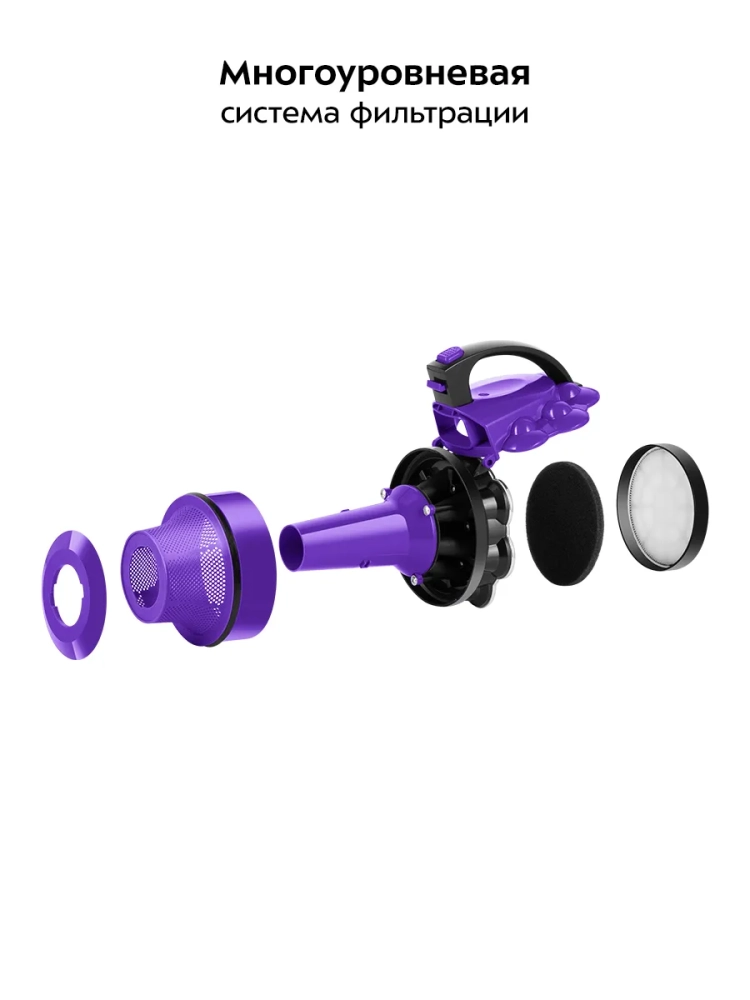 Пылесос оснащен современной многоуровневой системой фильтрации, которая обеспечивает хорошую очистку, при этом сила всасывания не зависит от наполненности пылесборника.